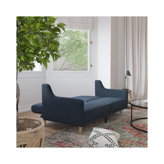 Navy Faux Linen Sofa Futon