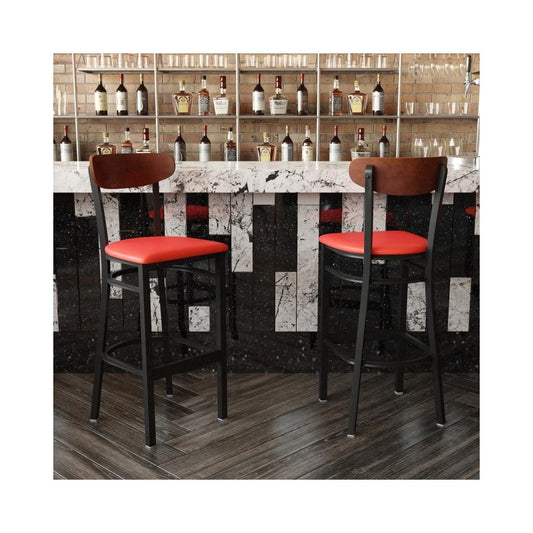 Red Vinyl/Wood Back Barstool