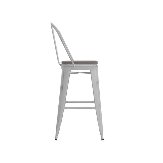 White Metal Stool-Gray Seat