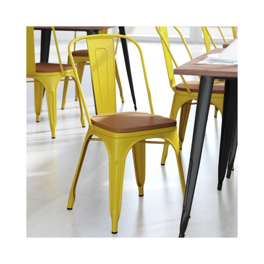 Yellow Metal Chair-Teak Seat