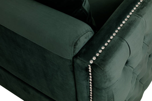Lilola Home Bayberry Green Velvet Sofa with 3 Pillows