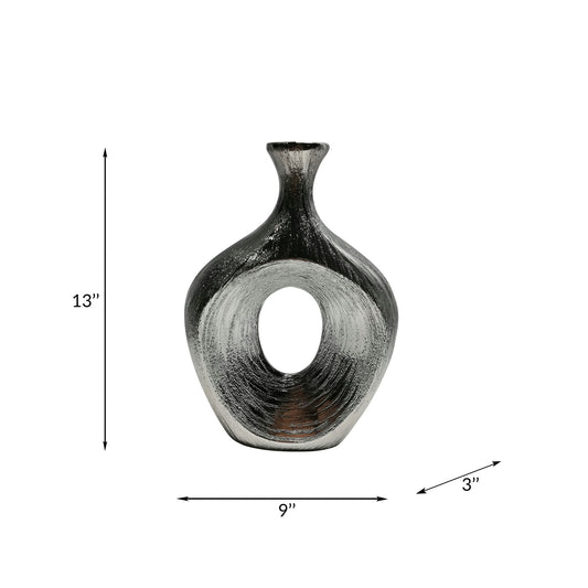 13" Scratched Oval Vase Cut-out, Silver