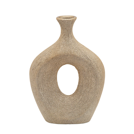 13" Scratched Oval Vase Cut-out, Champagne