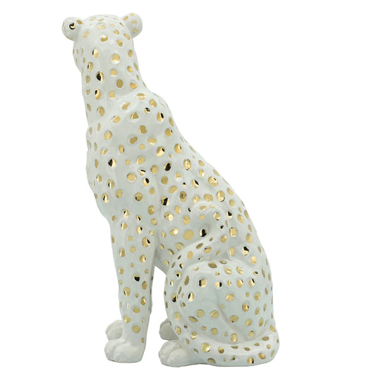 11" Sitting Leopard, White/gold