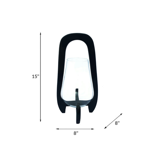 15"h Glass Lantern W/ Wood Handle, Black