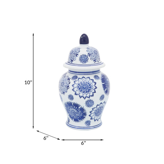 Cer, 10"h Asstd Flowers Temple Jar, Blue