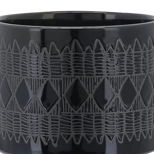 Cer, S/2 5/8" Aztec Planter On Wooden Stand, Black