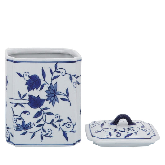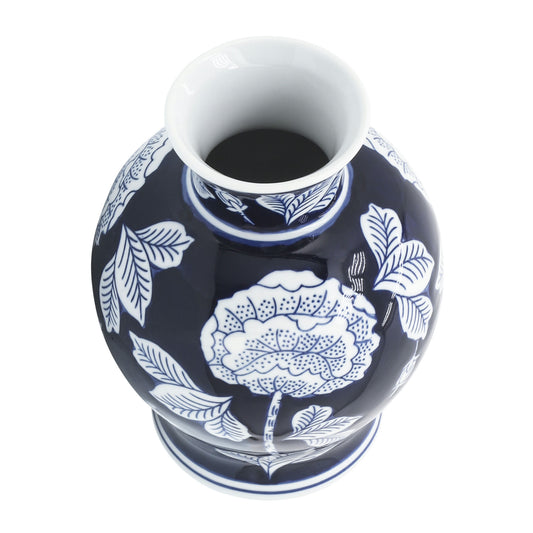 Cer,12"dotted Pillar Candle Holder,nvy Blue/cotton