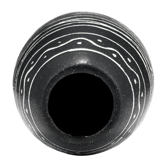 Cer, 9"h Spiral Dot Flower Vase, White/black