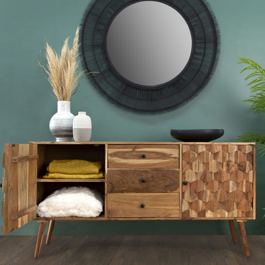 Ceramic 8" Aztec Planter On Wooden Stand, Black