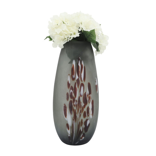 Glass, 12''h, Frosted Vase With Red Detail-gray