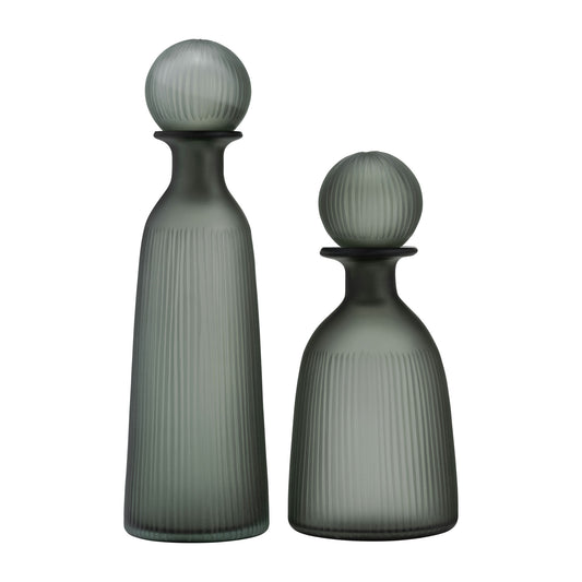 Glass, 19" Metallic Bottle W/ Stone Top, Silver