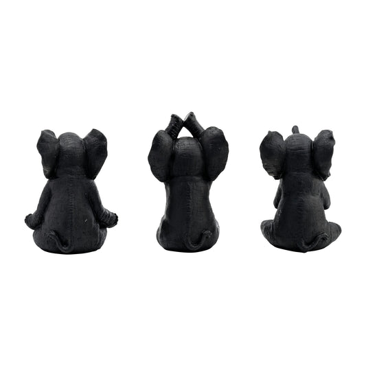 Resin, S/3, 8"h, Yoga Elephants, Blk