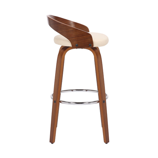 Sonia 26" Counter Height Swivel Cream Faux Leather and Walnut Wood Bar Stool