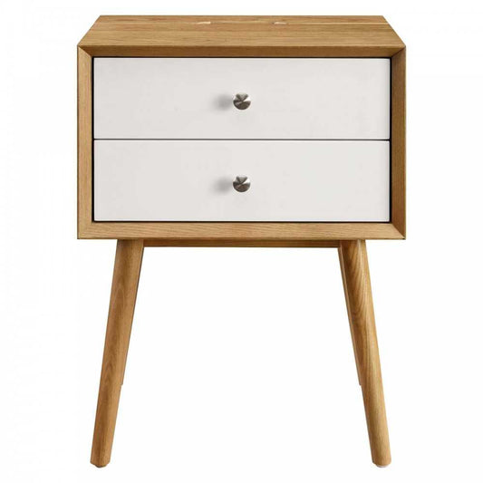 Ember Wood Nightstand With USB Ports, Natural Natural