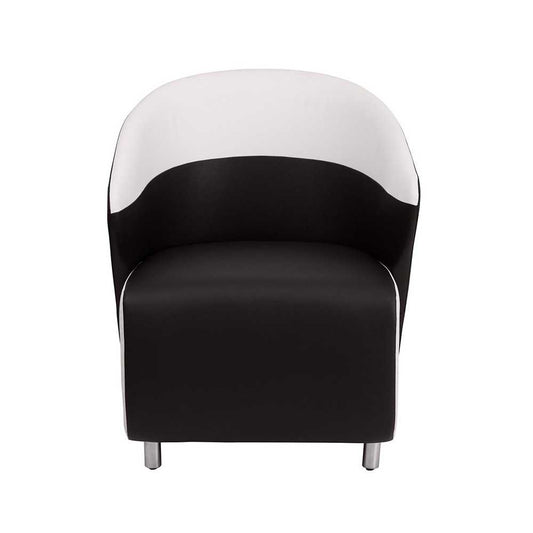 Black LeatherSoft Curved Barrel Back Lounge Chair with Melrose White Detailing