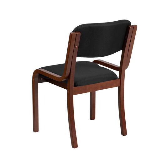 Contemporary Walnut Wood Side Reception Chair with Black Fabric Seat