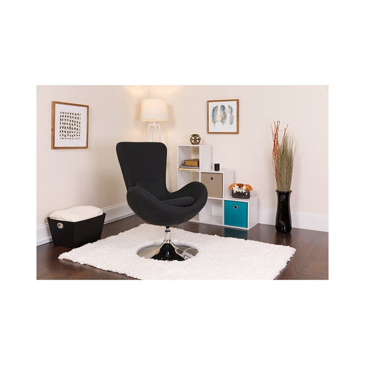 Egg Series Black Fabric Side Reception Chair with Ottoman