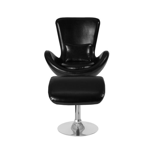 Egg Series Black LeatherSoft Side Reception Chair with Ottoman