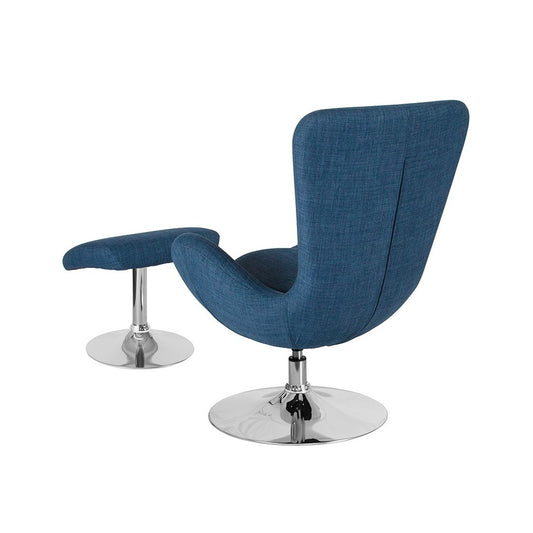 Egg Series Blue Fabric Side Reception Chair with Ottoman