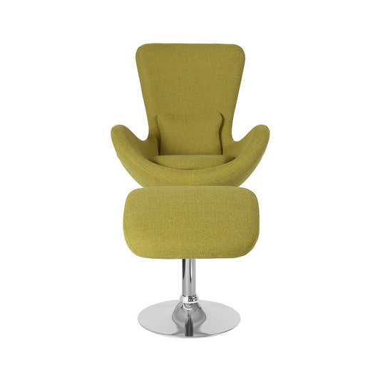 Egg Series Green Fabric Side Reception Chair with Ottoman