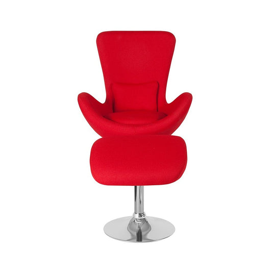 Egg Series Red Fabric Side Reception Chair with Ottoman