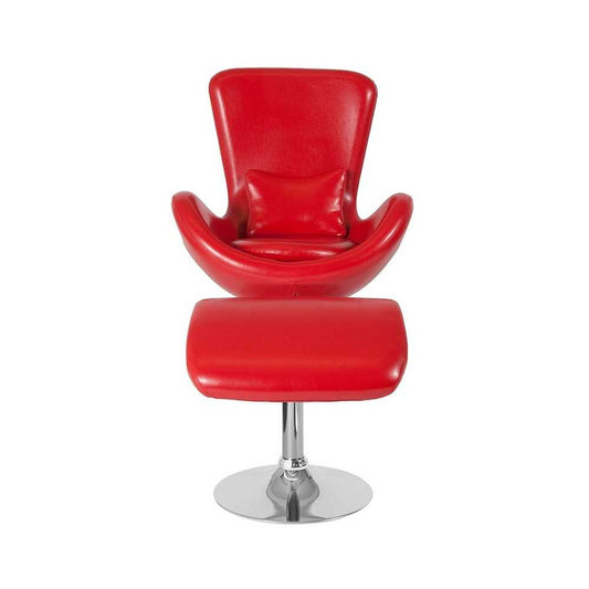 Egg Series Red LeatherSoft Side Reception Chair with Ottoman