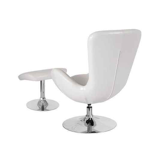 Egg Series White LeatherSoft Side Reception Chair with Ottoman