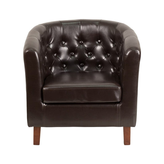 HERCULES Cranford Series Brown LeatherSoft Tufted Barrel Chair