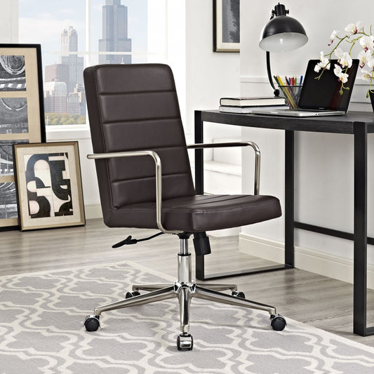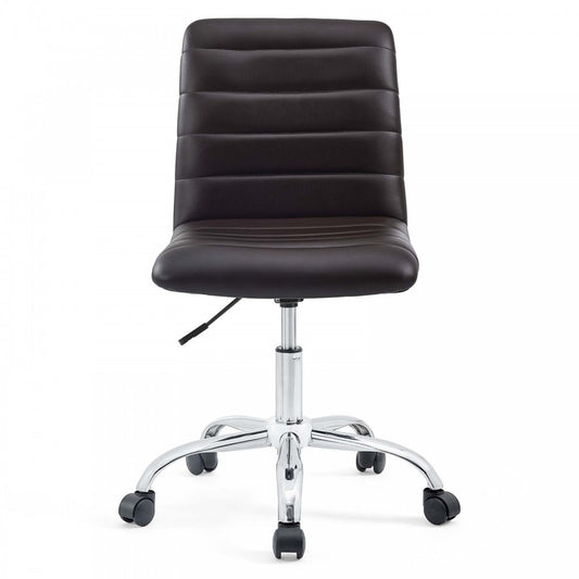 Ripple Armless Mid Back Vinyl Office Chair, Brown