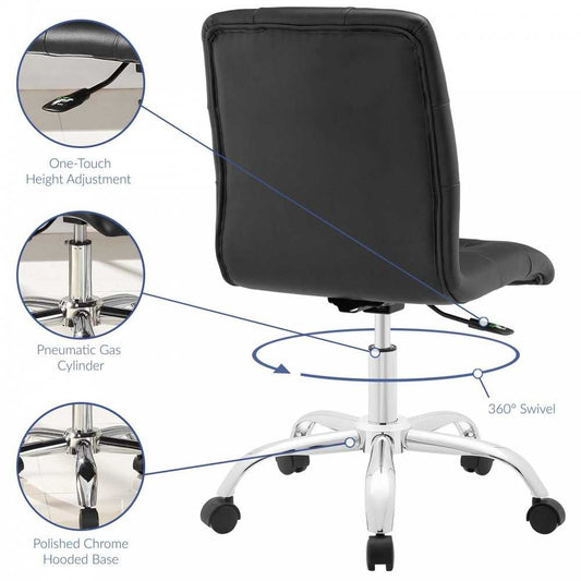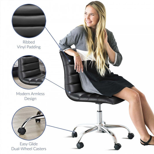Ripple Armless Mid Back Vinyl Office Chair, Black