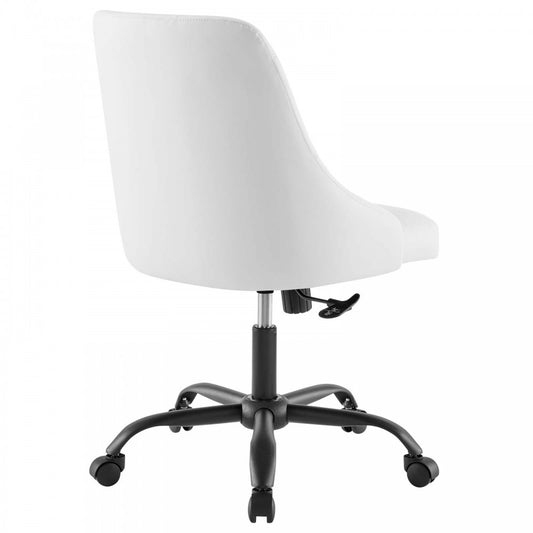 Distinct Tufted Swivel Vegan Leather Office Chair, Black White
