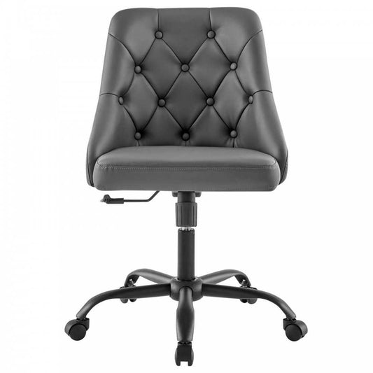 Distinct Tufted Swivel Vegan Leather Office Chair, Black Gray