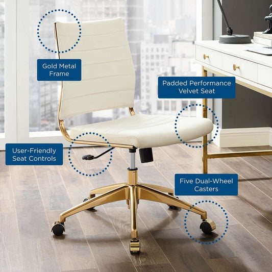 Jive Armless Mid Back Performance Velvet Office Chair, Ivory