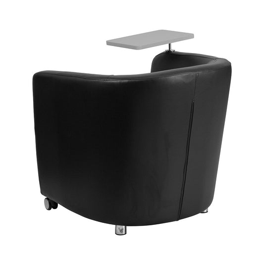 Black LeatherSoft Guest Chair with Tablet Arm, Front Wheel Casters and Under Seat Storage