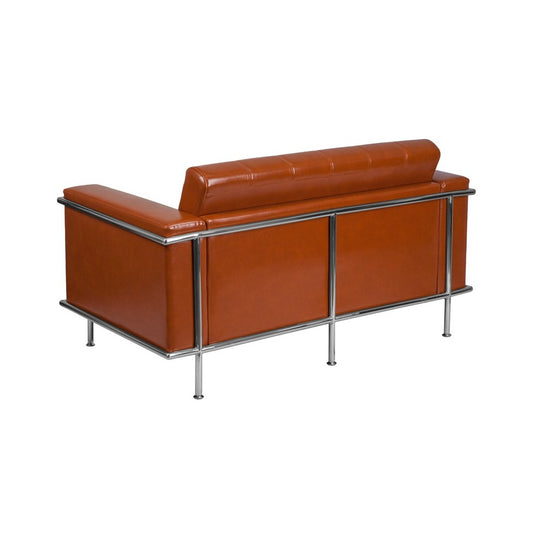 Contemporary Cognac LeatherSoft Loveseat with Encasing Frame