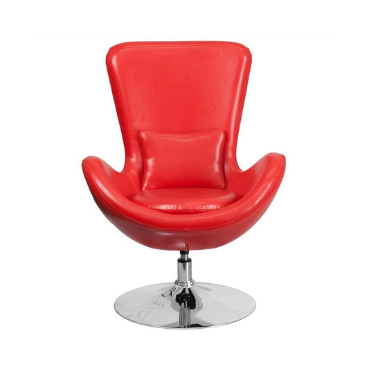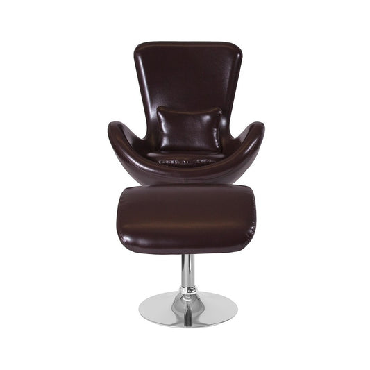 Egg Series Brown LeatherSoft Side Reception Chair with Ottoman