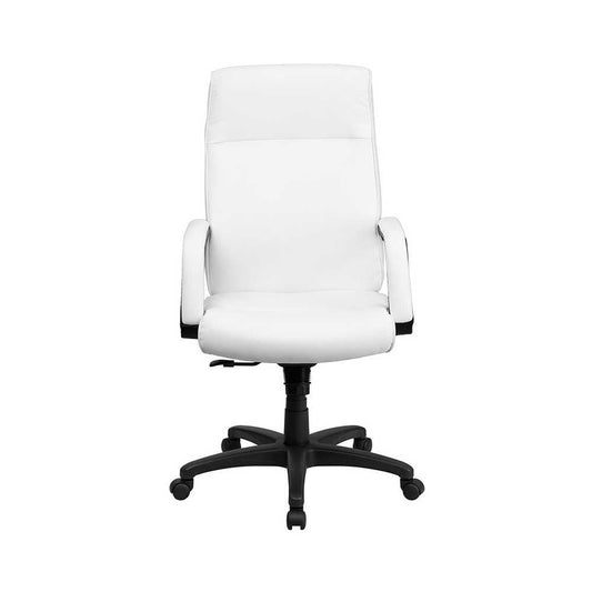 High Back White LeatherSoft Executive Swivel Ergonomic Office Chair with Memory Foam Padding and Arms