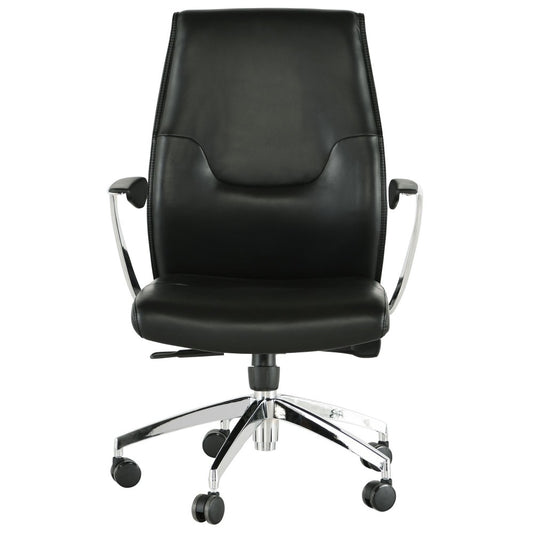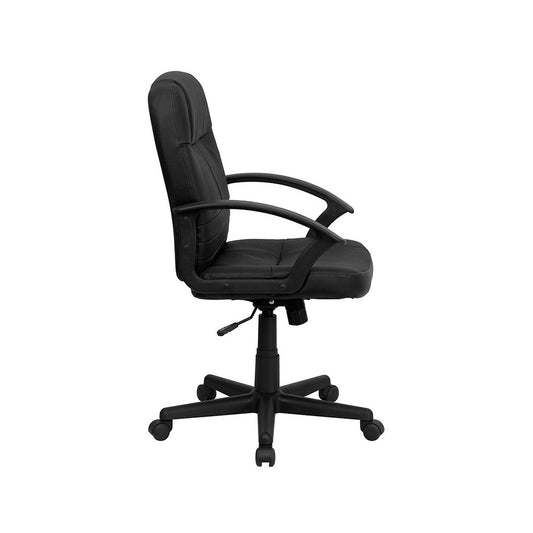Mid-Back Black Leather Executive Swivel Office Chair with Rounded Back and Arms