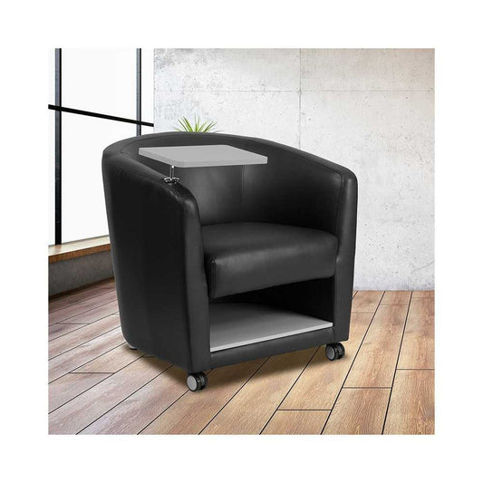 Black LeatherSoft Guest Chair with Tablet Arm, Chrome Legs and Under Seat Storage
