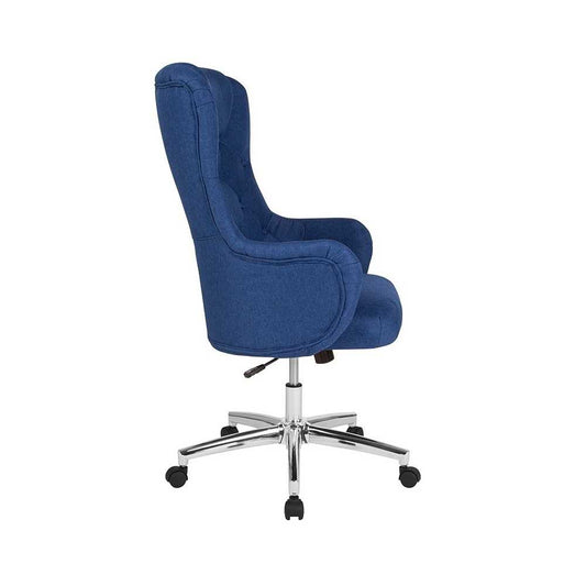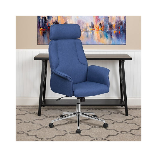 High Back Desk Chair | Blue Upholstered Swivel Chair for Desk and Office