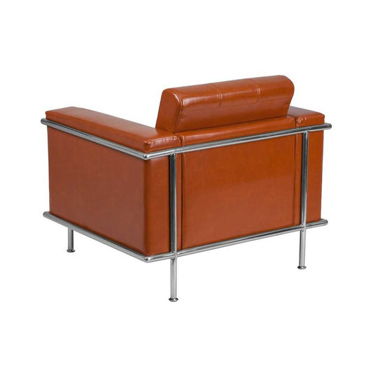 Contemporary Cognac LeatherSoft Chair with Encasing Frame