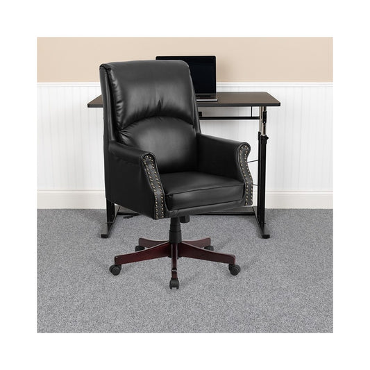 High Back Pillow Back Black LeatherSoft Executive Swivel Office Chair with Arms