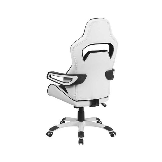 High Back White Vinyl Executive Swivel Office Chair with Black Fabric Inserts and Arms