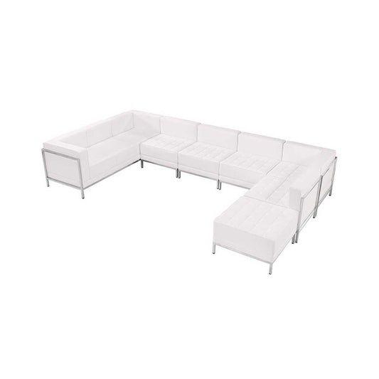 Melrose White LeatherSoft U-Shape Sectional Configuration, 7 Pieces