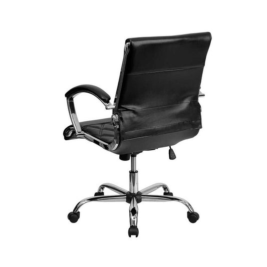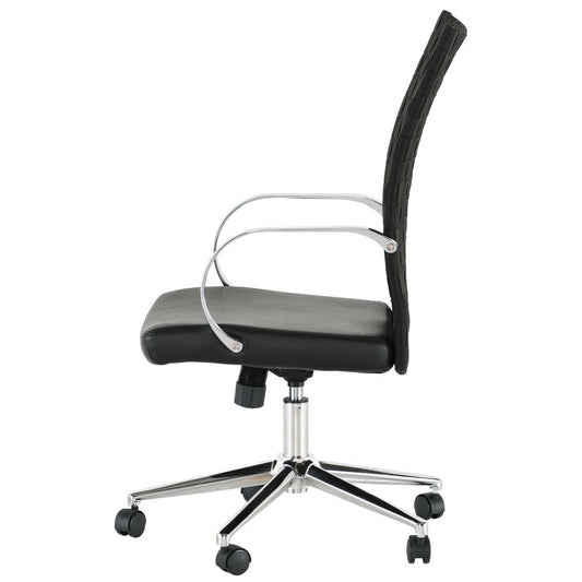 Mid-Back Designer Black LeatherSoft Executive Swivel Office Chair with Chrome Base and Arms