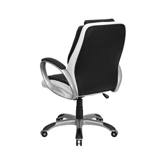 Mid-Back Black and White LeatherSoft Executive Swivel Office Chair with Arms