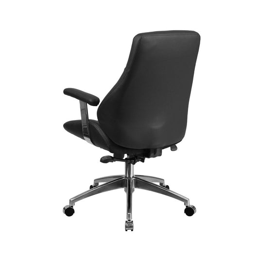 Mid-Back Black LeatherSoft Smooth Upholstered Executive Swivel Office Chair with Arms