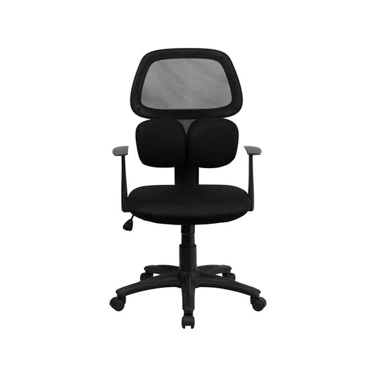 Mid-Back Black Mesh Swivel Task Office Chair with Flexible Dual Lumbar Support and Arms