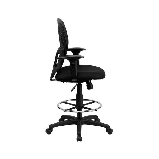 Mid-Back Designer Back Drafting Chair with Fabric Seat and Adjustable Arms